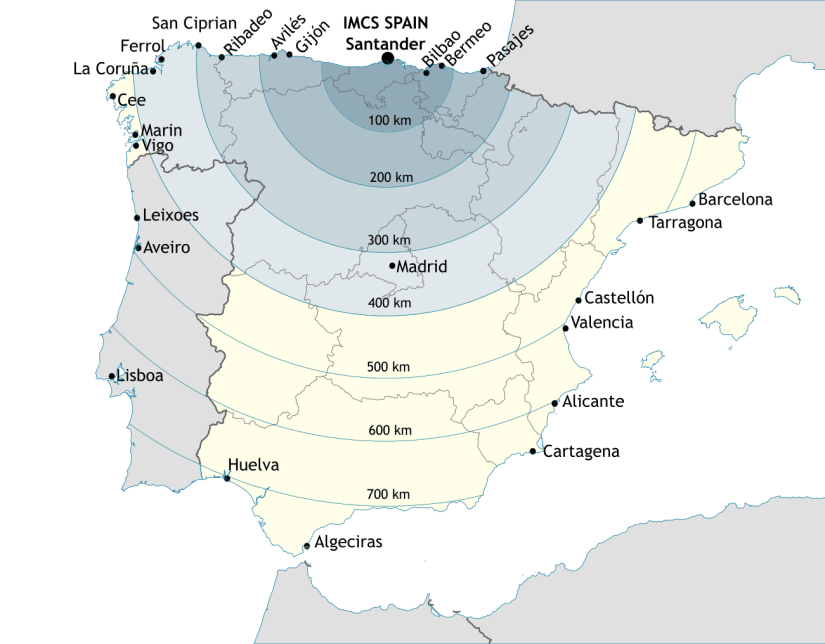 IMCS Spain is located in Santander, along the Bay of Biscay in the north of Spain. Our convenient position in the middle of the Avilés-Pasajes range, lets us cover many ports on short notice. Find out where we deliver our services.